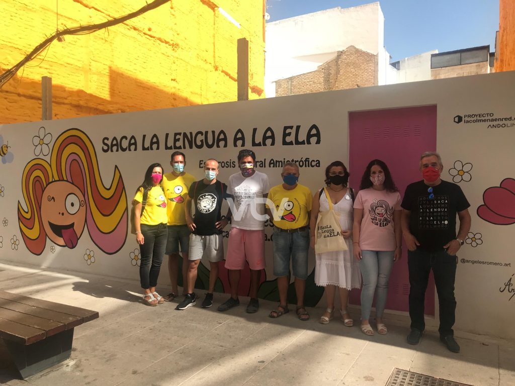 La artista lucentina Ángeles Romero ha sido la encargada de darle colorido e ilustrar un mural que se ubica en la céntrica calle El Peso, y con el que se quiere visibilizar la Esclerosis Lateral Amiotrófica, más conocida como ELA. Se trata de una enfermedad degenerativa de tipo neuromuscular, que se origina cuando las células del sistema nervioso llamadas motoneuronas disminuyen gradualmente su funcionamiento y mueren, con lo que se provoca una parálisis muscular progresiva.