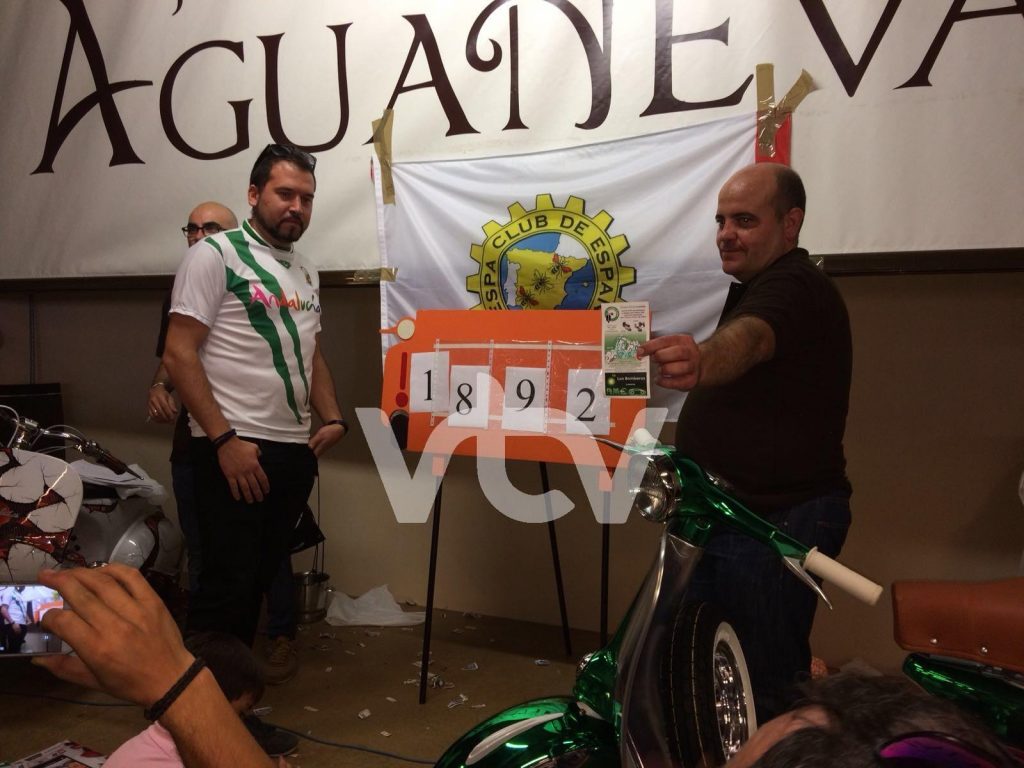 En el mismo acto se llevó a cabo la entrega de trofeos y premios y el sorteo de una vespa 125N, restaurada pro Talleres Roldán de Cabra que recaía en la papeleta 1.892, cuyo agraciado fue un véspero de Torre del Campo.