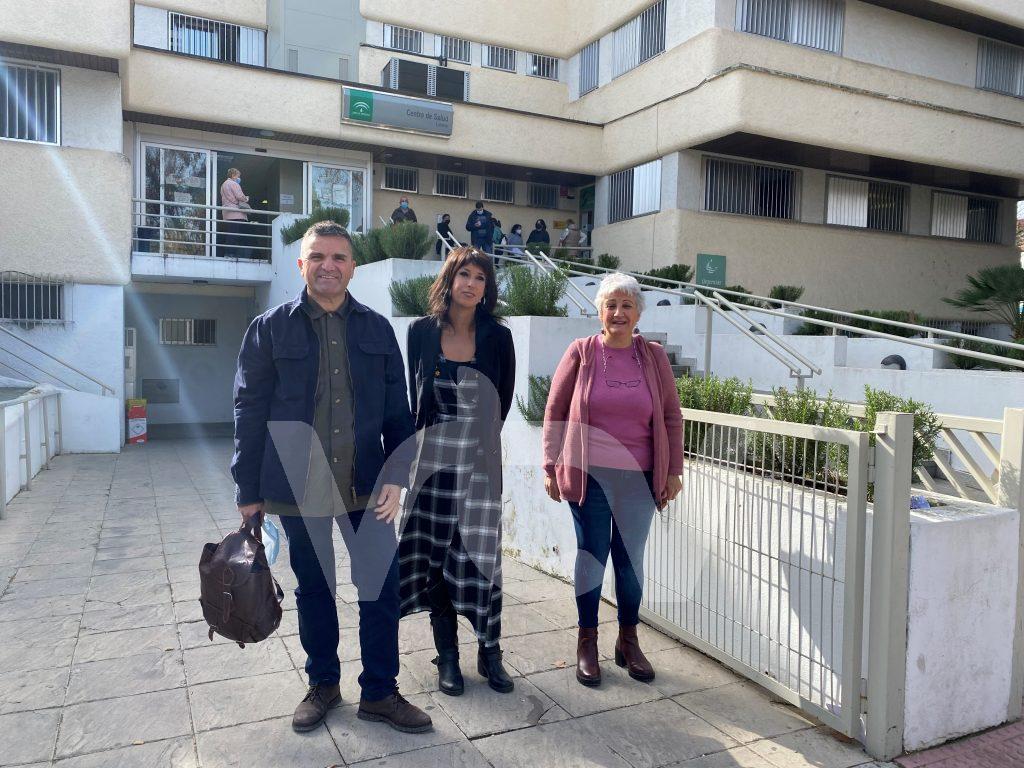 La diputada de Podemos, Martina Velarde y el Responsable de Organización de este grupo político en Lucena, José Antonio Ranchal, repartían información a las puertas del Centro de Salud de la Avenida del Parque para denunciar los recortes en sanidad pública del Gobierno de Juanma Moreno.