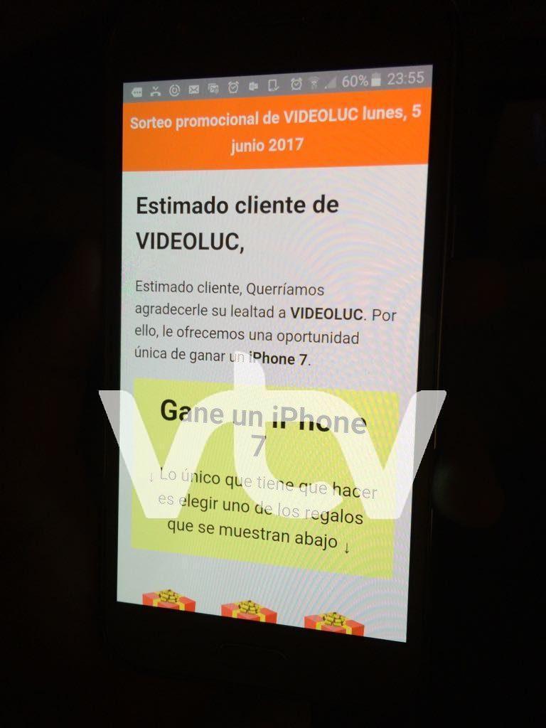 Ante un anuncio que hemos descubierto en las redes sociales donde se indica que Videoluc Televisión sortea entre sus clientes de un móvil Iphone 7, desde esta casa se quiere informar de que se trata de una estafa que nada tiene que ver con esta televisión local.